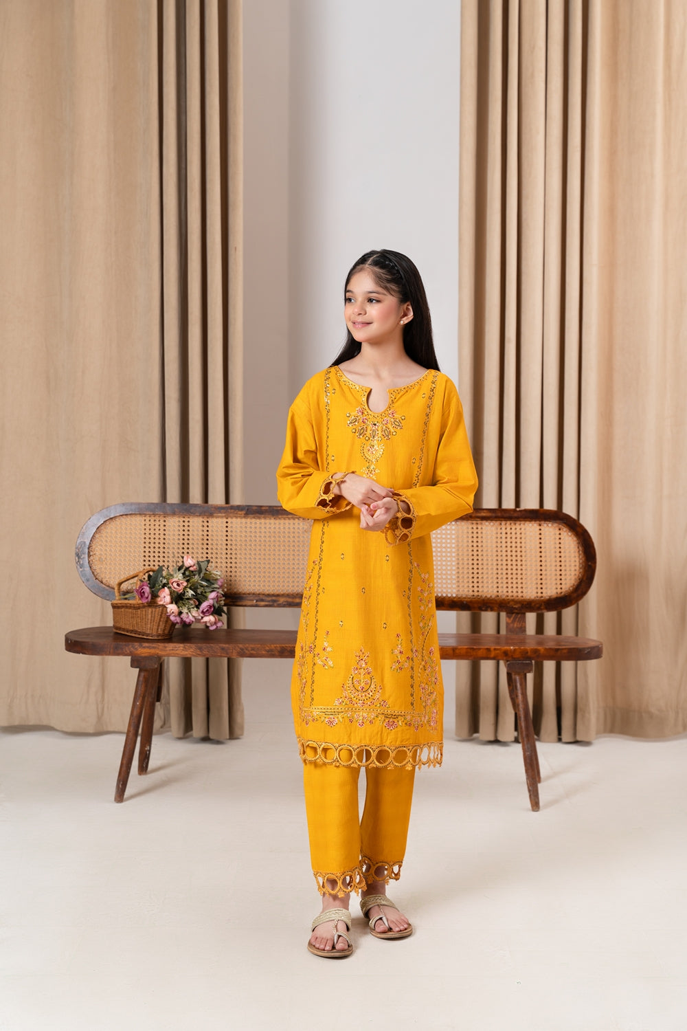 This elegant 2-piece set features a beautifully embroidered shirt paired with coordinating trousers. The intricate detailing on the shirt adds sophistication, making it ideal for both formal gatherings and stylish outings. Comfortable and chic, this outfit is perfect for a polished, refined look.