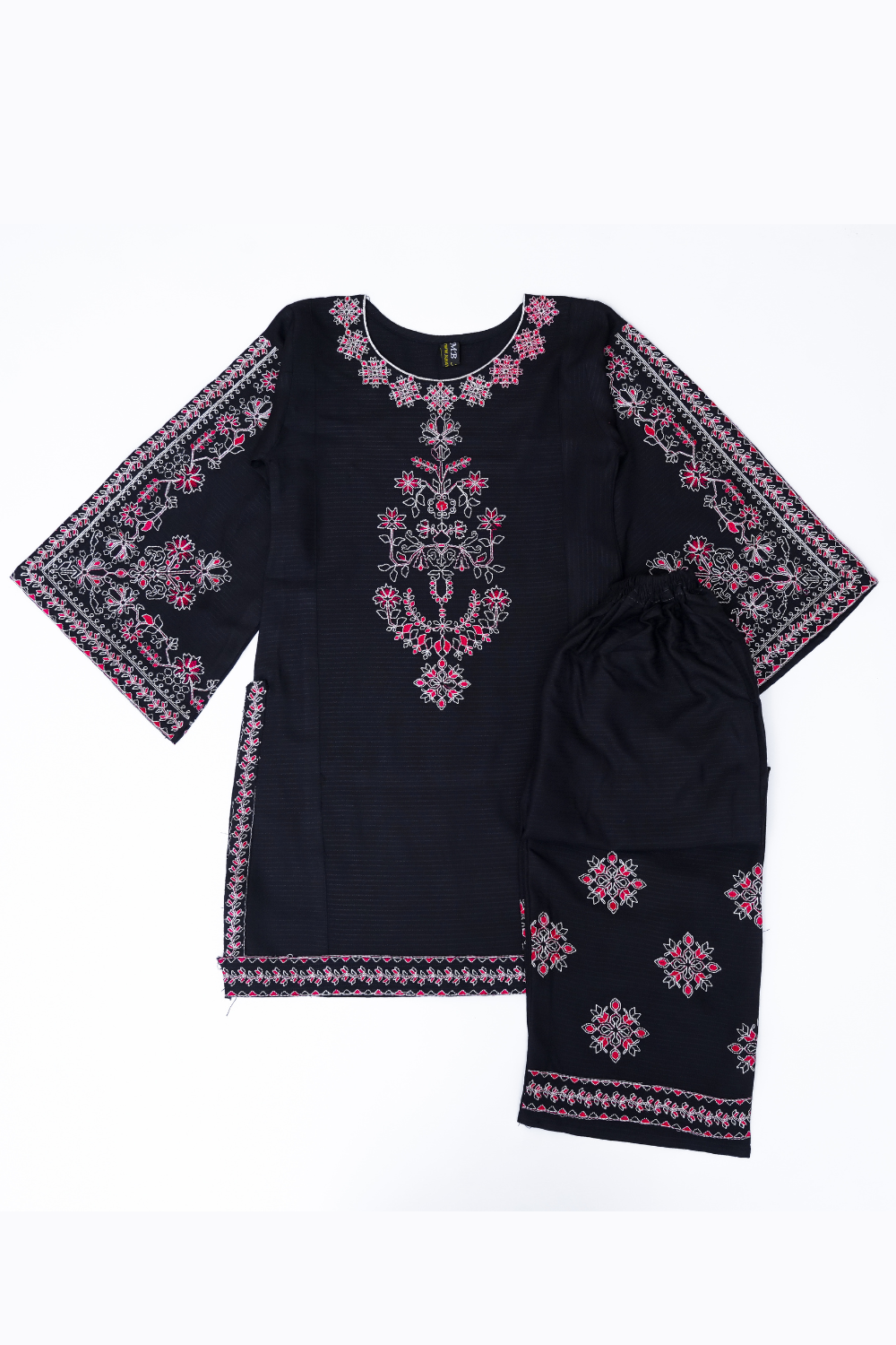 This stylish 2-piece ensemble features a delicately embroidered shirt paired with an embroidered flapper, creating a cohesive and elegant look. Perfect for special occasions, the intricate embroidery adds sophistication, while the flapper silhouette brings a graceful, flowing charm to the outfi