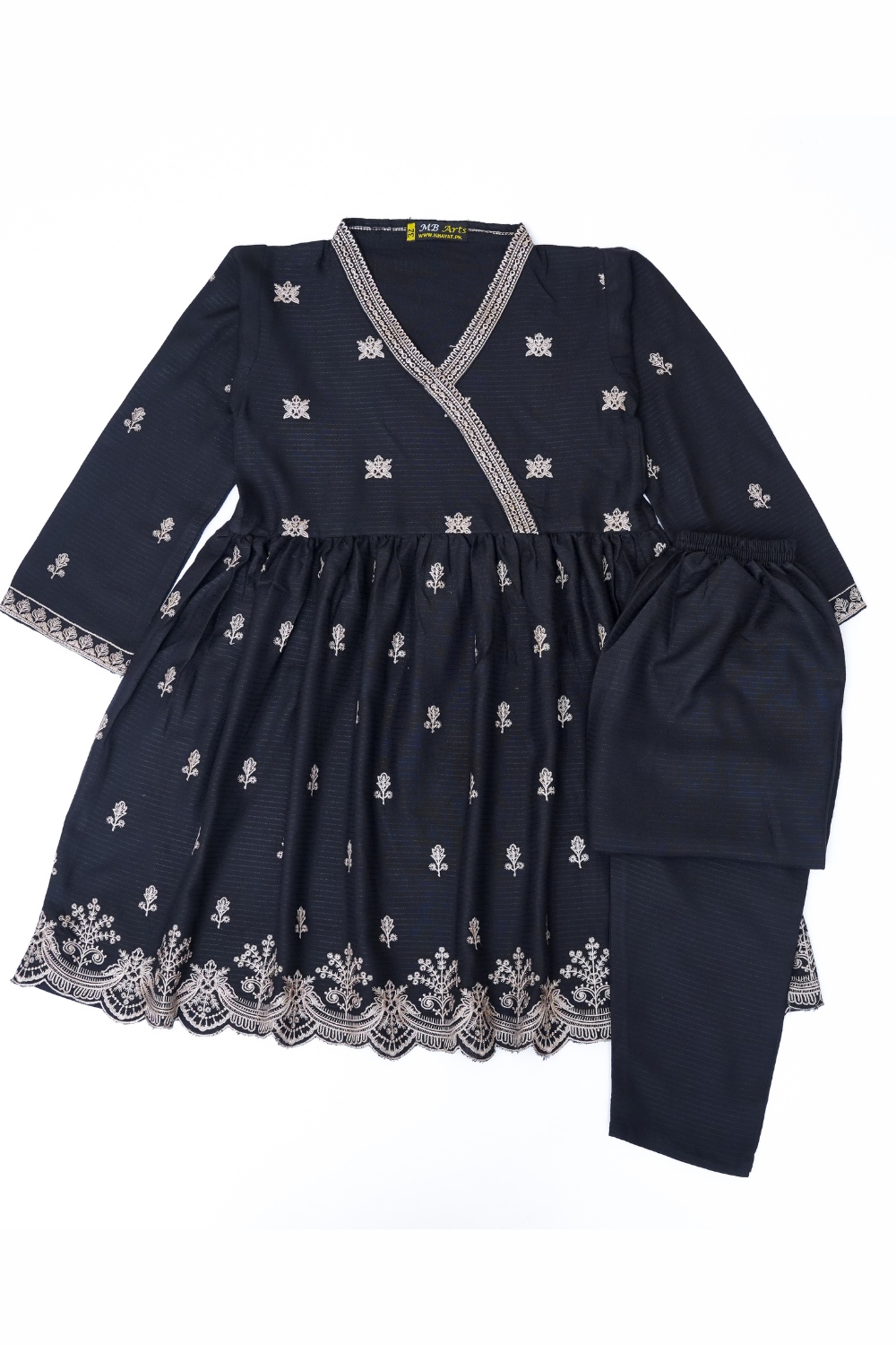 2- Piece embroidered pleat frock and trouser